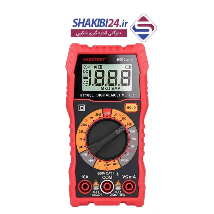 مولتی متر دیجیتال هابوتست مدل HABOTEST HT108L با قابلیتهای متنوع، ابزاری کاربردی برای مهندسان و تکنسینهای برق و الکترونیک است. این مولتی متر هابوتست امکان اندازهگیری ولتاژ، جریان، مقاومت الکتریکی، ظرفیت خازنی و دیگر پارامترهای الکتریکی را با دقت بالا فراهم میکند. با طراحی ارگونومیک، نمایشگر دیجیتال و قابلیت خاموشی خودکار، استفاده از آن ساده و کارآمد است.