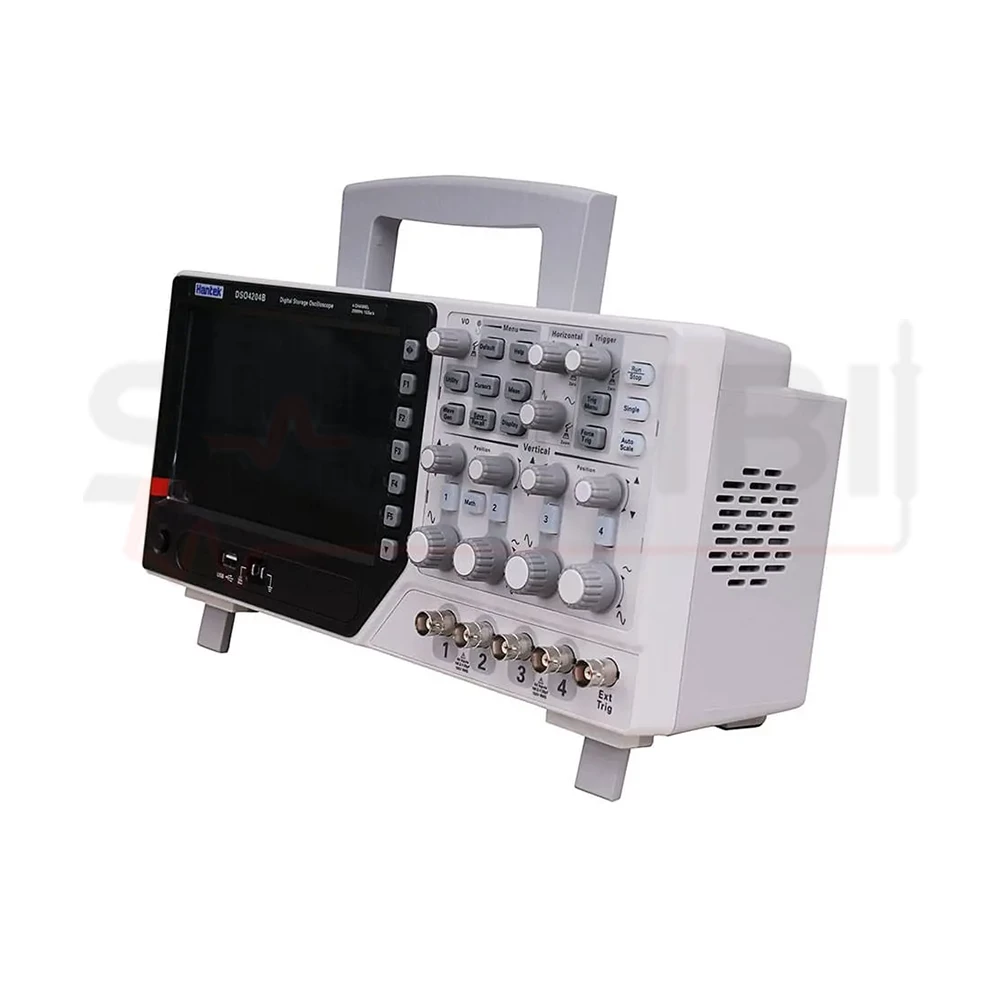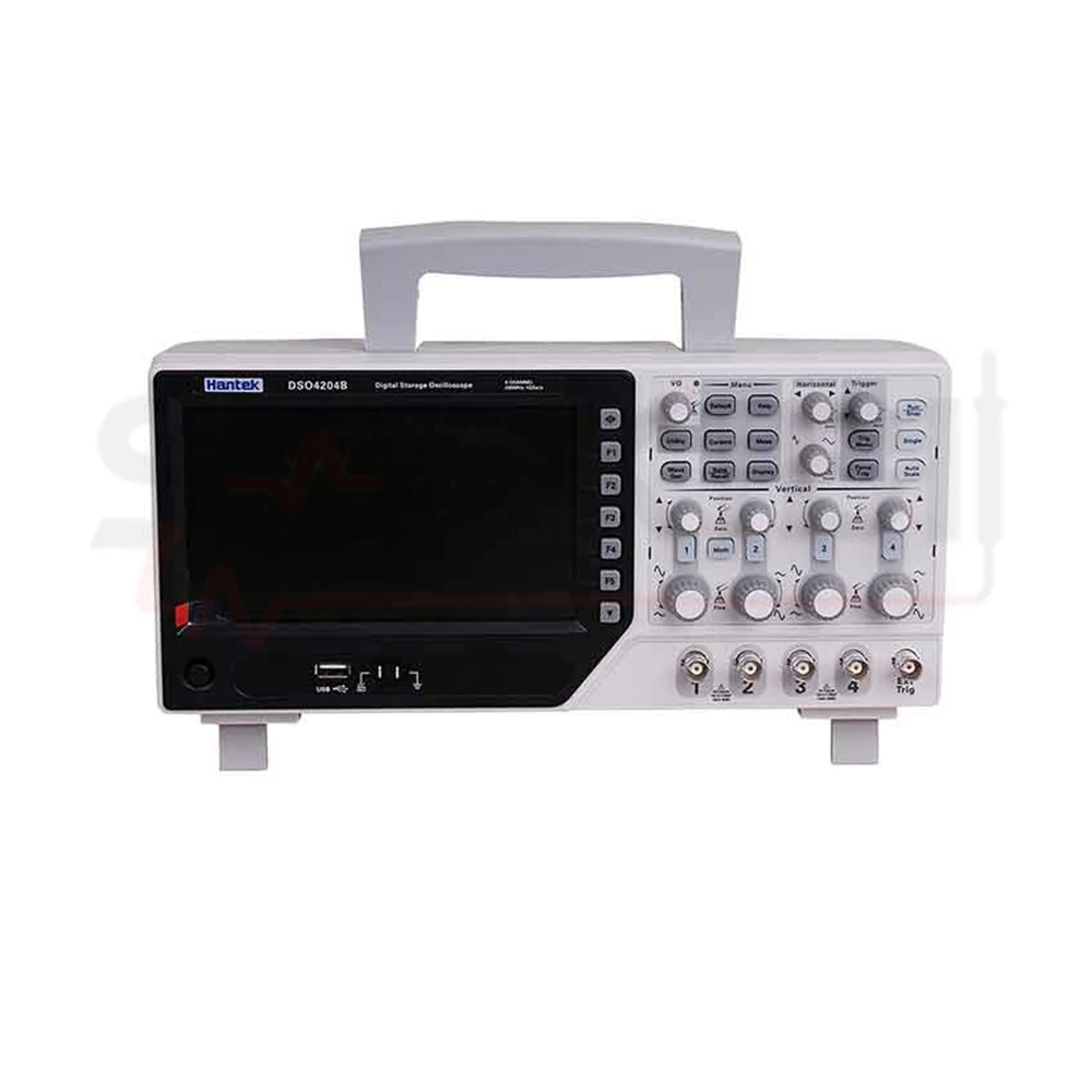 اسیلوسکوپ دیجیتال هانتک مدل HANTEK 4204B اسیلوسکوپ حرفه ای 4 کانال با پهنای باند 200 مگا هرتز می باشد .با توجه به اینکه تعداد کانال در قیمت اسیلوسکوپ دیجیتال بسیار موثر است با توجه به امکانات اسیلوسکوپ دیجیتال هانتک HANTEK DSO-4204B این دستگاه جز ارزان ترین قیمت اسیلوسکوپ دیجیتال با ورودی 4 کانال بوده که برای کاربرد های تحقیقاتی و دانشگاهی و نمایش و آنالیز همزمان چهار شکل موج بسیار کاربردی می باشد .